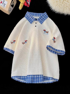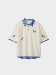 腊肠狗假两件polo领短袖T恤男高级感夏季潮牌刺绣宽松重磅五分袖