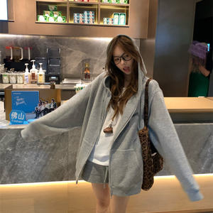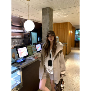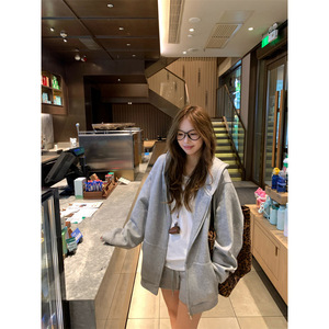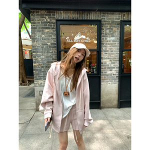 韩系辣妹空气层廓型宽松连帽卫衣外套女+短裤百搭休闲套装女