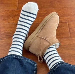 秋冬加厚保暖羊毛条纹袜子女中筒韩版ins堆堆袜诸暨袜子厂家批发