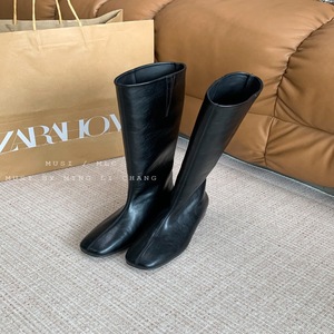 2025欧美风时尚简约长靴百搭冬季女靴子中跟坡跟内增高宽筒高筒靴