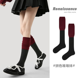 Renaissance原创女袜秋冬中筒袜百搭拼色无骨堆堆袜简约ins袜子女