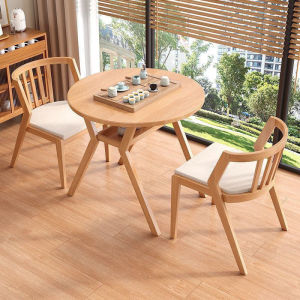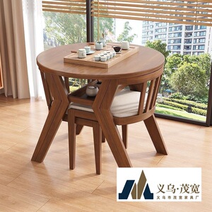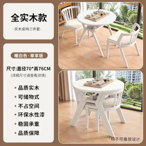 阳台休闲桌椅三件套实木茶桌一桌小户型家用二椅组合圆桌喝茶茶几