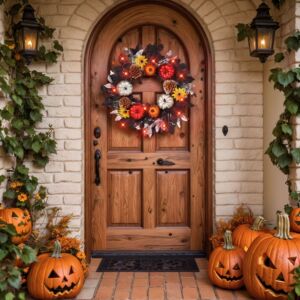 2025年跨境新款万圣节南瓜花环装饰门帘秋收节向日葵枫叶家居布置
