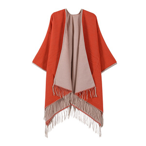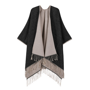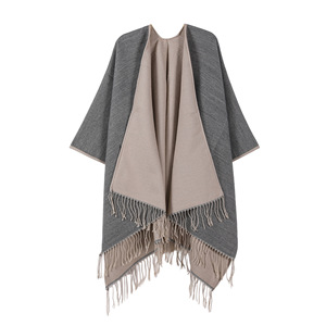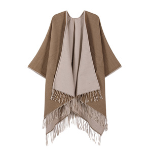 2025新款百搭经典纯色流苏开叉披肩仿羊绒外搭女针织保暖加厚披风