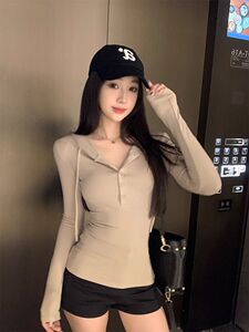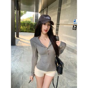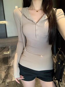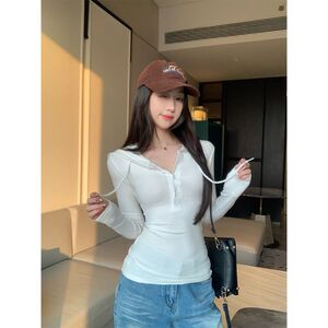 【自家工厂现货】韩系连帽长袖T恤女休闲百搭修身显瘦小众上衣