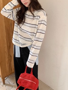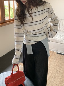 2025早秋慵懒风打底衫简约百搭条纹长袖T恤宽松显瘦上衣女ZIE