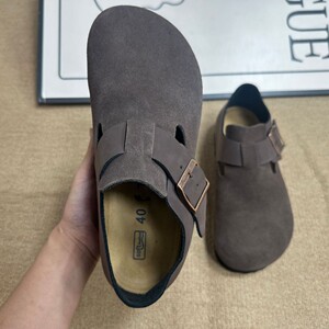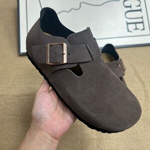 TEEMAZZ全包勃肯鞋软木底内增高休闲单鞋2025真皮拼接绒面博肯鞋