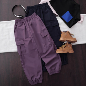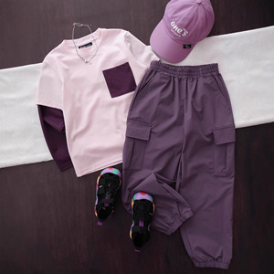 G129秋季男女中大童时尚户外休闲飞1了撞色假两件打底衫运动套装
