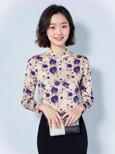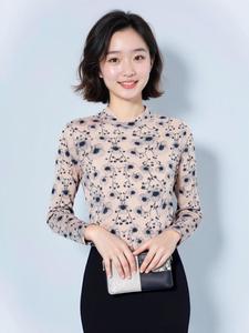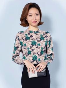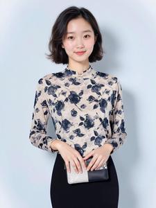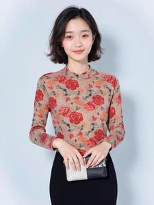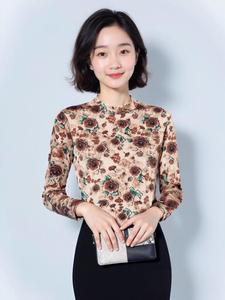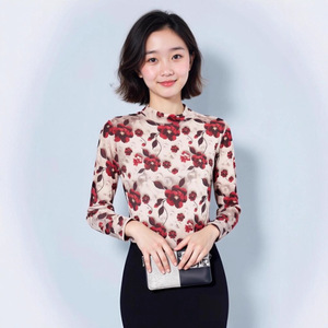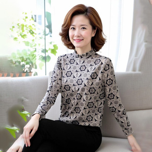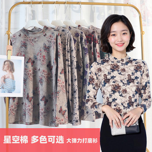 秋冬新款星空棉打底衫上衣中老年妈妈半高领印花宽松女士长袖T恤