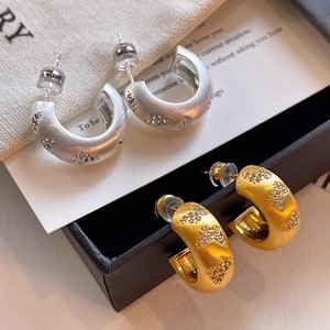 18K真金电镀小香风C形耳环女欧美个性冷淡风磨砂拉丝耳环耳饰批发