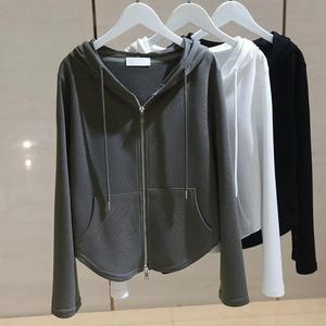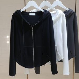 2025秋季新品棉连帽长袖卫衣女短款设计感小众拉链开衫上衣潮