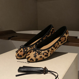 羊皮版~葡萄妈同款真皮马毛经典小圆头通勤百搭蝴蝶结豹纹单鞋女