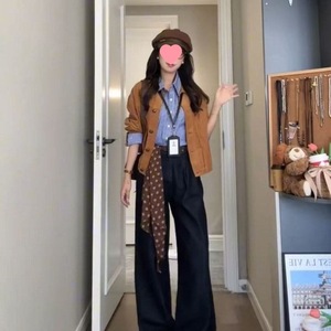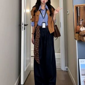 纯欲风辣妹套装女2025早秋新款韩系气质长袖外套衬衫阔腿裤三件套