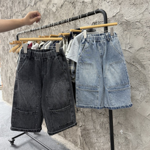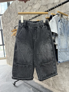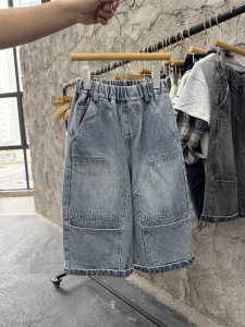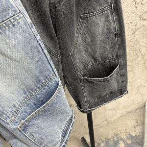 25男童秋款美式复古工装牛仔裤儿童帅气街头大口袋宽松直筒裤长裤