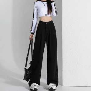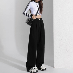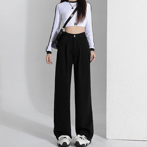 高腰新款黑色牛仔裤女春秋宽松遮肉显瘦直筒水洗阔腿裤子潮流ins