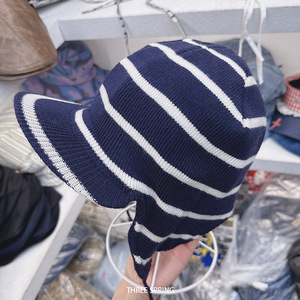 批发韩国2025年秋冬新款条纹毛线帽女保暖针织帽冷帽潮牌套头帽子