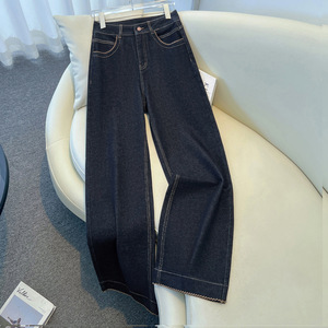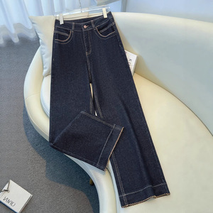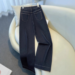 高腰丹宁蓝牛仔裤女春秋季直筒裤子2025新款美式窄版复古阔腿裤子