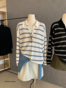【WGWE】6855长袖T恤休闲百搭显瘦防晒罩衫宽松翻领上衣长袖T恤