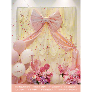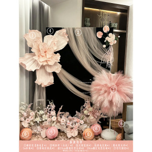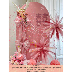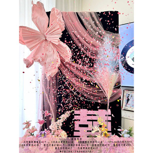 粉色婚房氛围感布置结婚套装拉花装饰婚礼女方客厅晨袍拍照背景墙