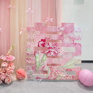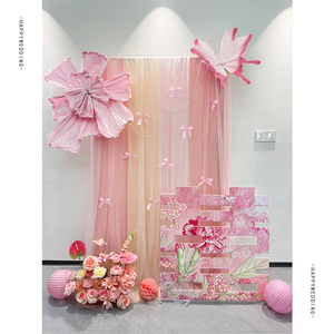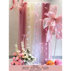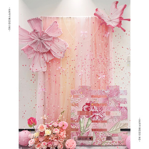 (含大纸花)粉色晨袍拼色纱幔拍照区