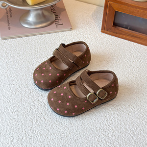 女童小皮鞋2025秋季新款勃肯鞋时尚百搭单鞋波点鞋子女孩外穿童鞋