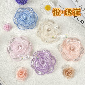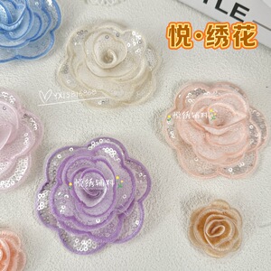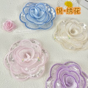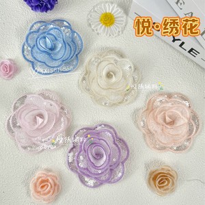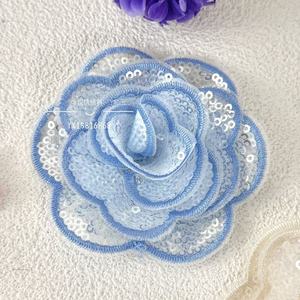 8cm珠片3d立体刺绣小花朵DIY发饰头饰童装婚纱晚礼服时装辅料配饰