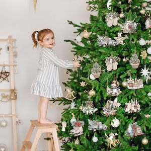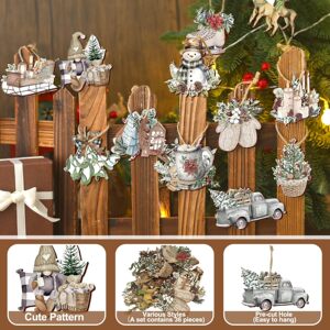 24件圣诞雪人木制挂饰圣诞麋鹿圣诞树装饰圣诞节派对装饰用品