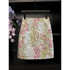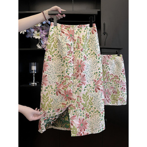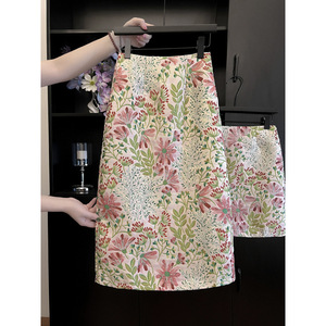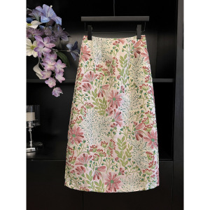 温柔碎花半身裙提花裙子女2025春秋显瘦包臀a字中长款高腰一步裙