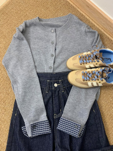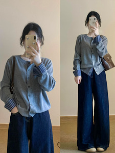 灰色小香风假两件打底衫开衫毛衣外套女秋冬慵懒高级感针织衫上衣