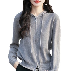 跨境2025秋冬新款连帽宽松针织开衫拉链短外套安迪绒针织衫上衣女