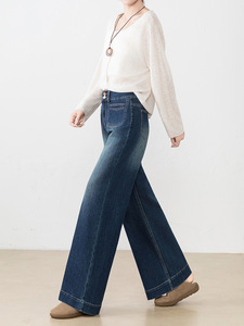 高腰阔腿牛仔裤女秋季2025新款直筒宽松梨型身材复古显瘦拖地裤子