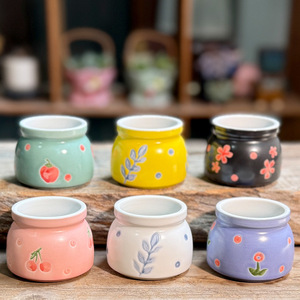 新款韩式手绘多肉拇指盆创意陶瓷家用室内粗陶简约多肉个性清新