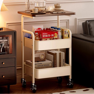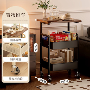可移动小推车中古风沙发边几桌子客厅带轮茶几卧室床边零食置物架