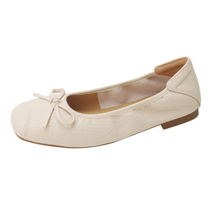 厂家直销批发2025新款圆头单鞋女洋气平底浅口百搭蝴蝶结休闲鞋