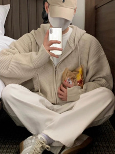 慵懒风连帽针织衫外套男秋冬季通勤穿搭韩系宽松高级感毛衣