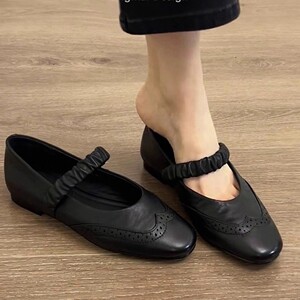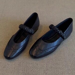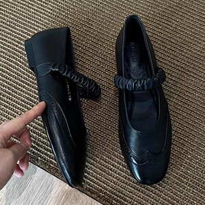 现货羊皮版~软底单鞋女配裙子平底芭蕾晚晚鞋子法式复古玛丽珍鞋