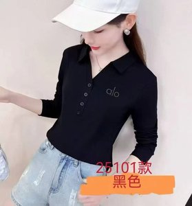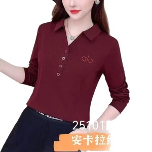 一件代发长袖t恤女刺绣字母POLO领打底衫2025春秋季新款纯色上衣