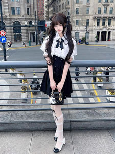 夏季千金既视感清楚系量产型设计感气质斗篷连衣裙套装