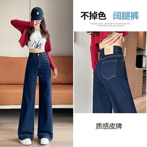 丹宁蓝牛仔直筒裤女年春夏新款长裤高腰弹力垂感阔腿拖
