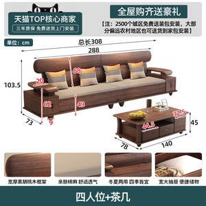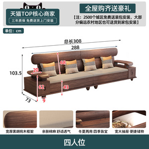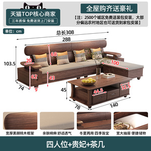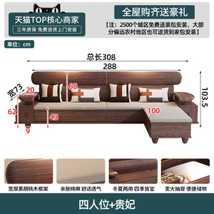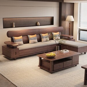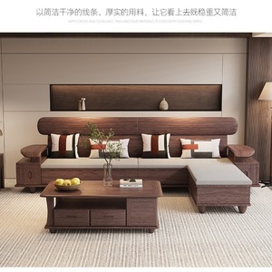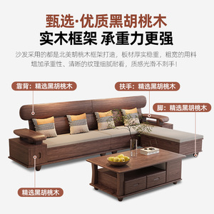 工厂直供黑胡桃木实木沙发客厅组合新中式小户型冬夏两用储物沙发