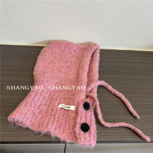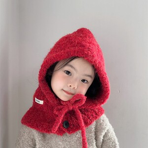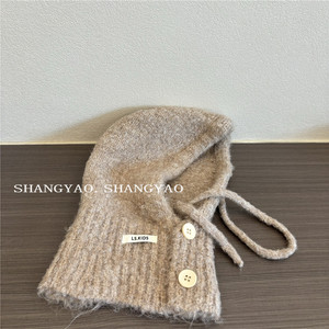 儿童帽子巴拉克拉法帽时尚圈圈纱男女宝宝保暖风雪帽针织围脖一体