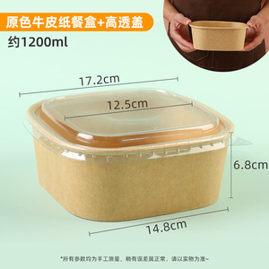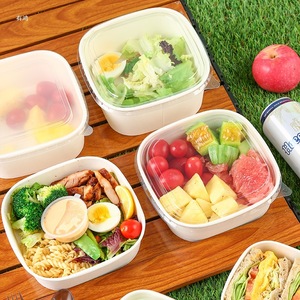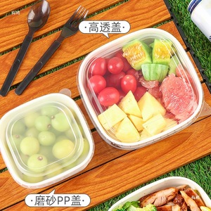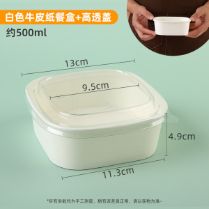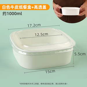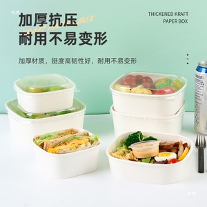 一次性餐盒白色正方形水果打包盒果切盒子牛皮纸包装盒轻食便当盒