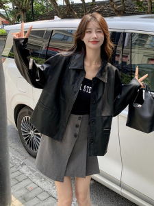 黑色小皮衣外套女秋2025新款高级感港风复古翻领炸街机车pu皮上衣