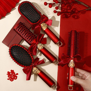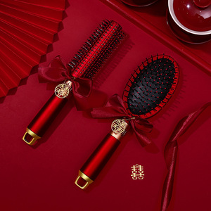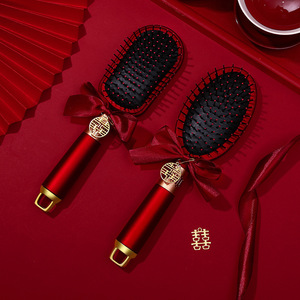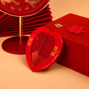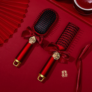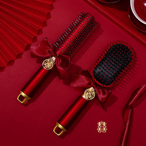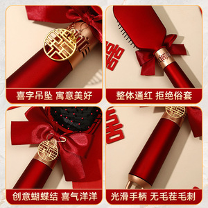梳子结婚一对镜子陪嫁红色气垫梳喜木梳套装嫁妆物品女方全套用品