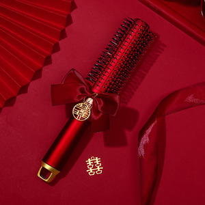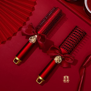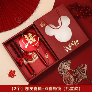 【2个】圆形滚筒喜梳+双喜婚镜【礼盒款】