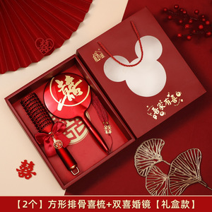 【2个】方形排骨喜梳+双喜婚镜【礼盒款】