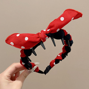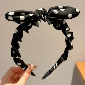 黑色褶皱波点蝴蝶结发箍女2025新款高颅顶头箍日常外戴压发卡头饰
