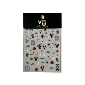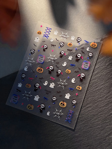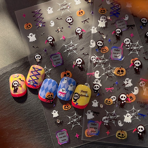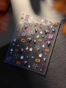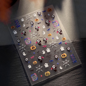 浮雕死神幽灵美甲贴纸暗黑南瓜灯蜘蛛网指甲贴万圣节系列装饰批发