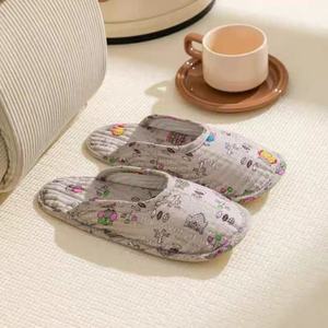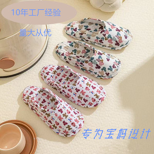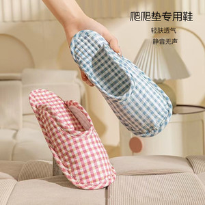 爬爬垫拖鞋家居新款室内布底包头拖纯棉布艺四季透气静音地板鞋