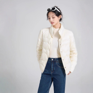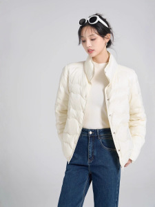 云朵轻暖!三星90白鸭绒立领泡芙羽绒服轻薄短款小个子冬季外套女